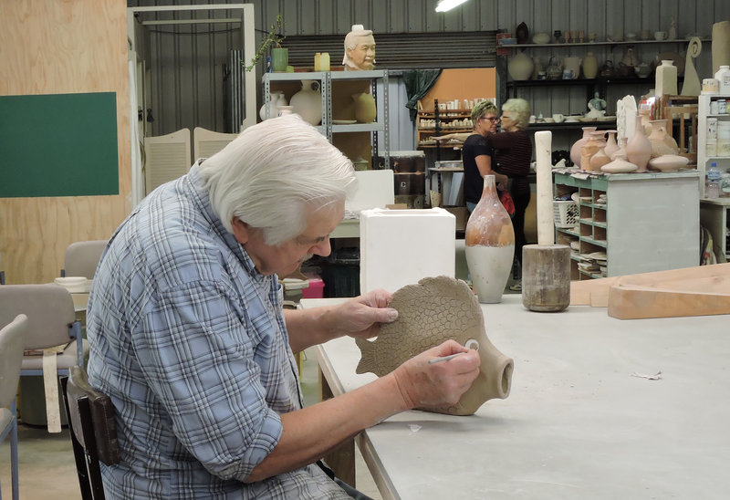 The Arts Centre has a well-established pottery group. The potter’s barn is situated up the hill behind the main gallery. The facilities are first class including several kilns and many wheels for general use. Experienced potters are always on hand to help any new members. Specialised workshops are held periodically. The quality pottery produced is displayed for sale in the main gallery.